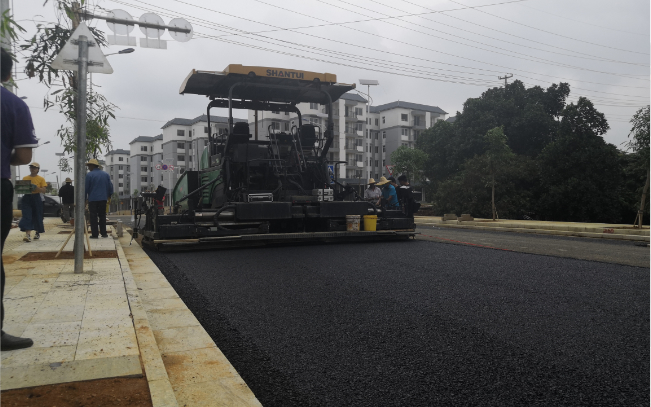 助力新農(nóng)村建設(shè),道路瀝青施工,攤鋪厚度為8cm,攤鋪寬度為6m,設(shè)備作業(yè)效果顯著,無離析,高的平整度獲得施工方及用戶的高度認可。