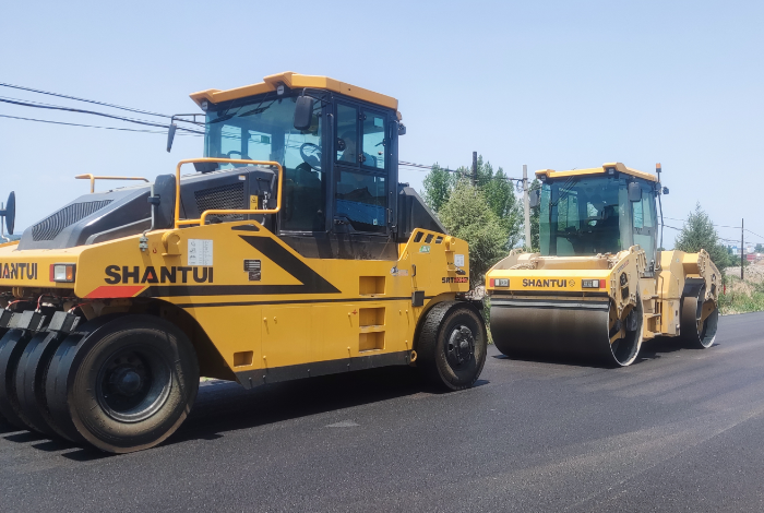 其中山推產(chǎn)品施工內(nèi)容包括:攤鋪機(jī)進(jìn)行一次性面層鋪設(shè),鋪設(shè)寬度8-8.5m;鋪設(shè)后先雙鋼輪振動(dòng)壓實(shí),后膠輪壓路機(jī)靜碾揉搓表面壓實(shí),施工遍數(shù)兩次。施工后進(jìn)行壓實(shí)度、平面度測(cè)量,達(dá)到施工標(biāo)準(zhǔn)要求。