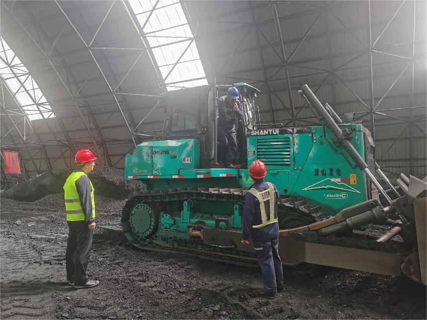本項目主要涉及煤棚推煤工況,核心任務是將煤粉堆垛后傳輸至傳送帶,以保證電廠燃煤供應的穩(wěn)定性。該電廠采用了四臺山推DE26-X2電動推土機,分別在四個煤棚作業(yè),形成了目前國內(nèi)電推設備集中度最高的作業(yè)區(qū)域。DE26-X2電推每日工作6-8小時,中午休息1.5小時,并在中午及下午作業(yè)結(jié)束后進行充電,以確保設備的持續(xù)高效運行。